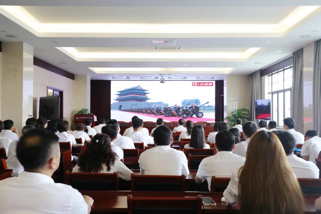 公司总部党员干部、职工在公司总部一楼会议室满怀激情收看庆祝大会直播,共同庆祝中国共产党百年华诞。