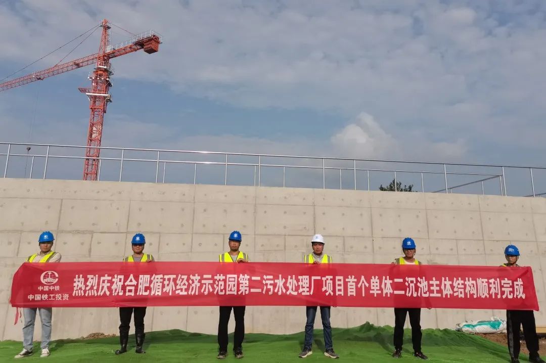 7月29日,合肥循环经济示范园第二污水处理厂项目首个单体二沉池主体结构顺利完成。...