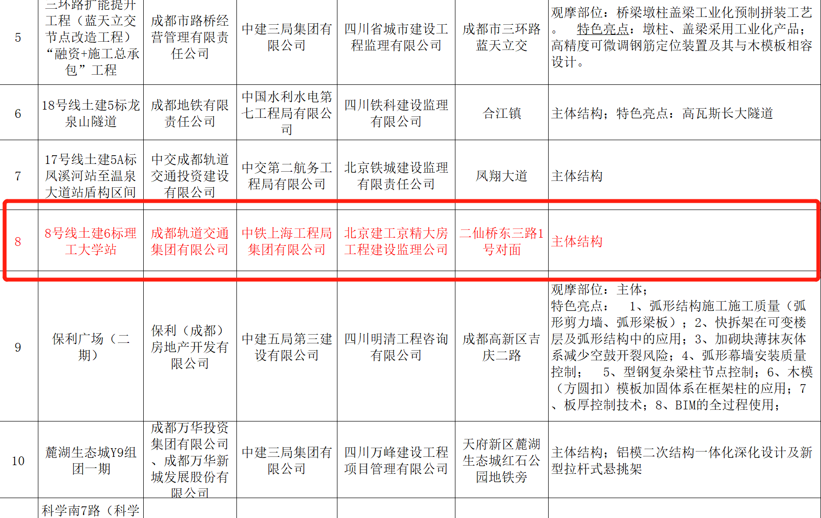 近日,由公司承建的成都轨道交通8号线一期工程6标理工大学站荣获2019年度成都市“优质示范工程”,这是继理工大学站荣获成都市“安标工地”后的又一殊荣。...