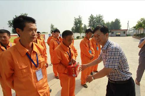 检查调研组首先代表股份公司党政工团在项目部驻地举行了“夏送清凉”慰问活动,调研组成员亲自将防暑降温慰问品递到项目职工和协作队伍人员手中,表达了股份公司对一线职工的深切关怀。随后,调研组参观了正在施工大干的环湖西路站施工现场,详细询问了项目施工的进展情况,对工地现场有形化宣传、安全文明施工等方面给予了肯定。