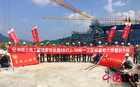 9月7日,经参建人员近5小时的连续奋战,由中铁上海局蒙华铁路MHTJ-16标段一工区承建的杨家岭大桥中跨合龙段混凝土顺利浇筑完成,标志着蒙华铁路晋豫管段唯一左右分幅、斜跨三淅高速公路、采用菱形挂篮悬臂灌注法施工、最大跨度连续梁大桥——杨家岭大桥顺利合龙。