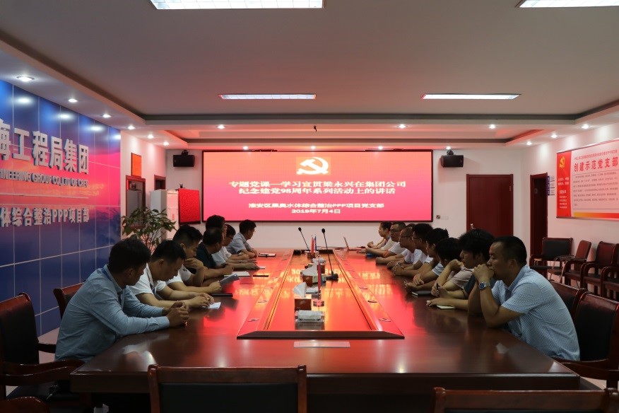 7月4日,淮安区黑臭水体综合整治PPP项目党支部组织学习乐竞官方版网站登录入口公司纪念建党98周年系列活动精神。会议由项目书记主持,对讲话精神进行了重点阐释,并对项目党支部作出以下安排:一是要把学习、宣传、贯彻梁永兴在乐竞官方版网站登录入口公司纪念建党98周年系列活动的讲话与项目“大干120天”紧密结合起来,确保优质高效地完成施工生产任务;二是要以学促进,通过学习进一步提升全体员工的政治敏感性和党员修养,以创建局“示范党支部”和公司“四好班子”为抓手,有效推动项目党建工作顺利开展。(申娟)