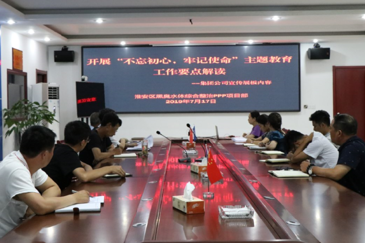 7月17日,淮安项目党支部开展“不忘初心,牢记使命”主题教育工作宣贯会。全体党员及领导干部参加会议,会上,党支部书记传达了习近平总书记、张宗言总裁关于 “不忘初心、牢记使命”主题教育工作讲话精神等内容,对其重点概念和内涵进行一一解读。随后,为大力推进主题教育工作在项目走深走实,项目党支部书记作了动员部署:党员干部要深入学习“不忘初心,牢记使命”主题教育的重大意义和总要求,准确把握和理解这一总要求,才能确保主题教育开展见成效;要守初心、担使命,履职尽责,时刻向先进党员看齐,鞭策自己,不忘初心,把握现在,以实际行动践行党员标准。(张佩佩)