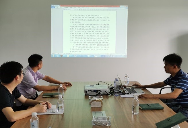 7月17日,襄阳分公司党委学习宣贯张宗言总裁“不忘初心、牢记使命”主题教育讲话精神。分公司党委书记带领大家宣读学习了讲话精神,指出要把此次讲话精神与学习贯彻党的十九大精神紧密结合,不断提高自身的思想自觉、行动自觉。全体党员干部也纷纷剖析了自身优劣,表示以后要继续拓宽思想深度,发扬刀刃向内的自我革命精神,认真检视反思,做到学在深处、谋在新处、干在实处。最后分公司经理作出总结:第一,要坚持思想建党、理论建党,分公司作为后勤职能单位,在此基础上多倾听职工群众呼声,切实关心职工群众困难,着力解决好职工群众操心事、烦心事,增强党员群众凝聚力。第二,全体员工要结合自身工作实际,思想上不断自我完善、自我提高。多检视自身不足,找出差距,并阶段性进行整改落实,增强党员干部责任感和使命感,为促进公司持续健康发展贡献一片绵薄之力。(李姣)